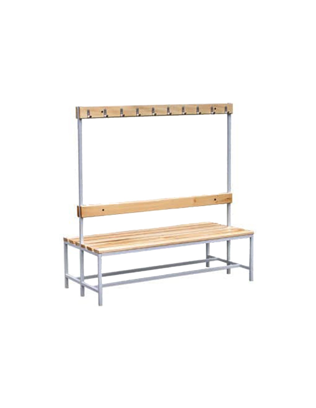 Banco Vestuario Doble Madera con Perchas y Repisa Vestof